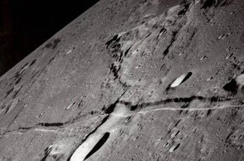 Maka presenter itu pun bertanya, “Hakikat apa yang kalian telah capai sehingga demikian mahal taruhannya? Mereka menjawab, “Ternyata bulan pernah mengalami pembelahan di suatu hari dahulu kala, kemudian menyatu kembali.!!! Gambar ini di foto dari pesawat ulang alik NASAPresenter pun bertanya, “Bagaimana kalian bisa yakin akan hal itu?” Mereka menjawab, “Kami mendapati secara pasti dari batuan-batuan yang terpisah terpotong di permukaan bulan sampai di dalam (perut) bulan. Lalu, kami pun meminta para pakar geologi untuk menelitinya dan mereka mengatakan, “Hal ini tidak mungkin telah terjadi kecuali jika memang bulan pernah terbelah kemudian bersatu kembali”.